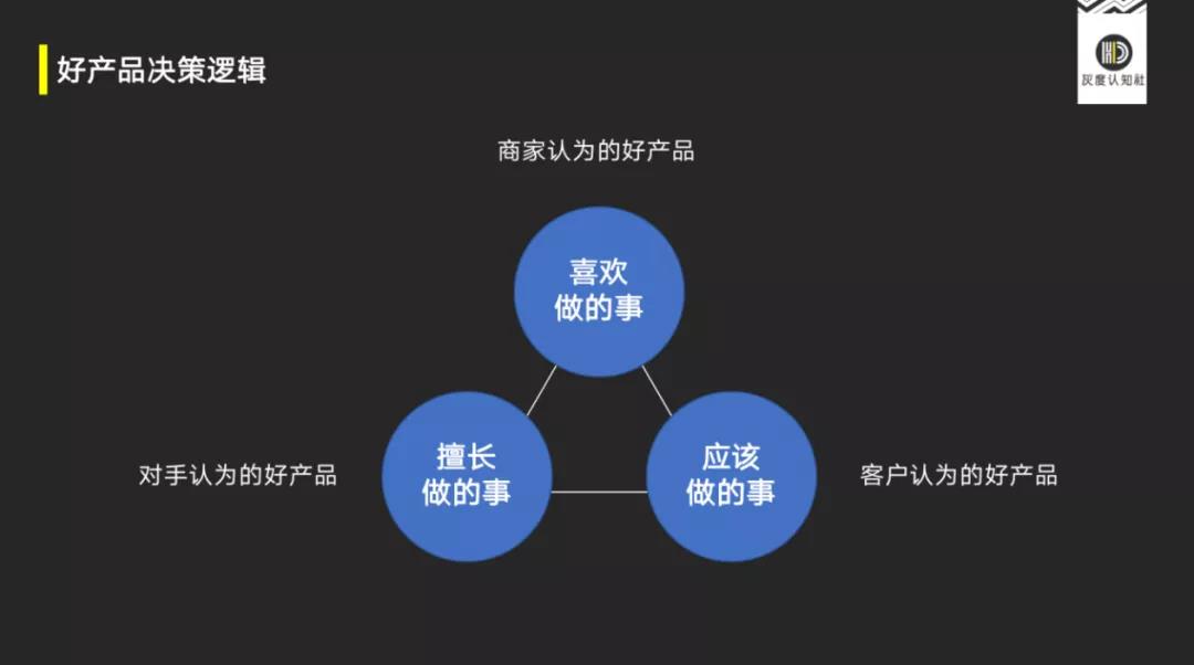 商家认为的好产品:用户价值高的同时商业价值高。用户认可我,同时还愿意付费。