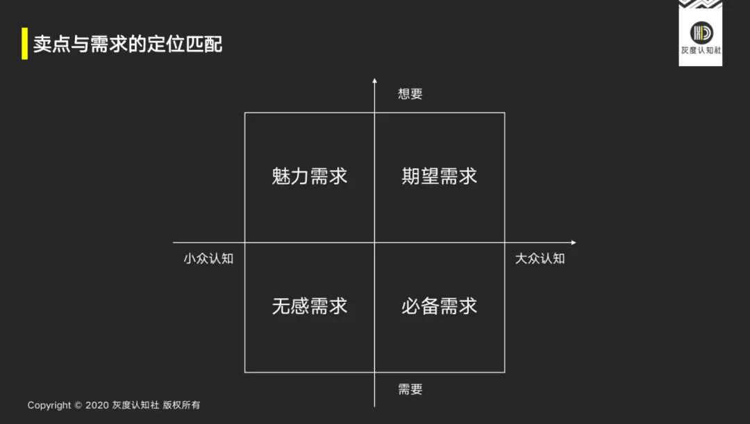 这是卖点和需求之间定位匹配的一个高度简化的模型。还有很多内容没有放进去。只是帮助我们思考如何进行需求定位?