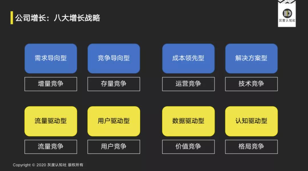 需求导向型(增量竞争):最好的竞争是远离竞争,我抢先进入一个新市场,等别人跟上来的时候,我又进入一个新市场。增量竞争是最好的竞争,因为别人始终在追随,而我是引领需求的。