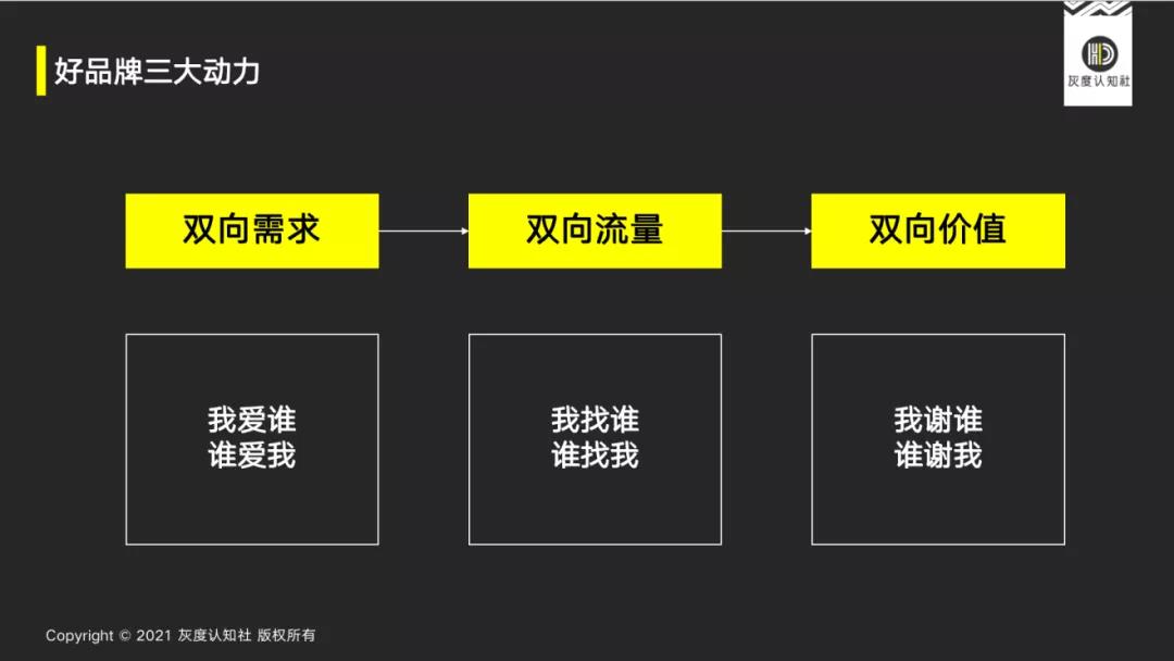 好品牌是在这三个双向里面不断的互动,不断的找到价值点,不断在螺旋上升。