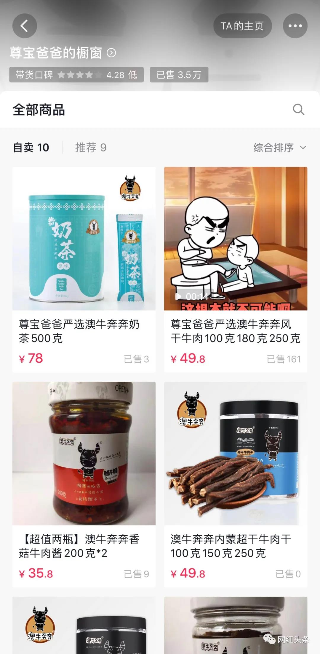该账号的橱窗中上架的几乎都是食品类,食品类相对其他品类来说,用户购物的决策成本较低。