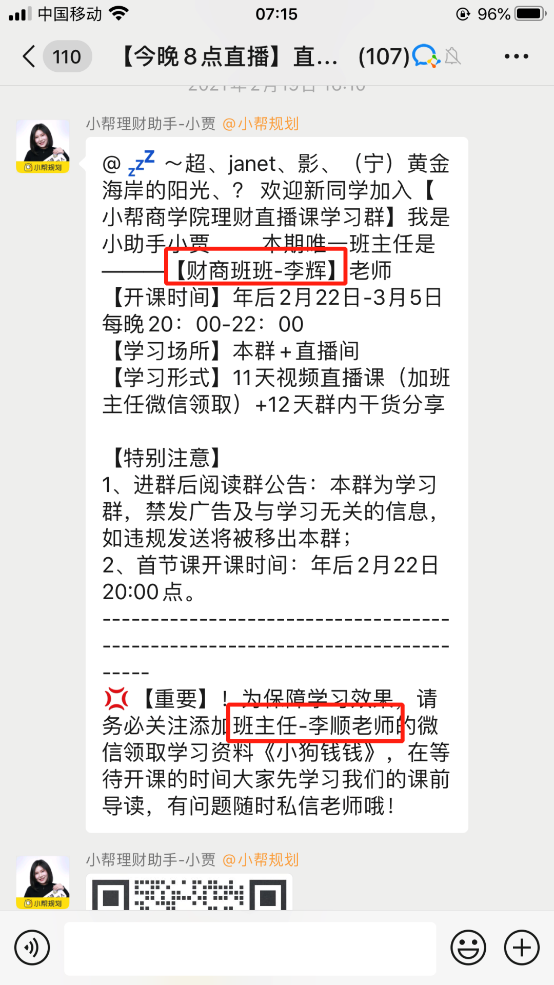 班班就先给了几个投资理财建议,引导报名正式课,但是并未给出报名链接,没有给出课程介绍。