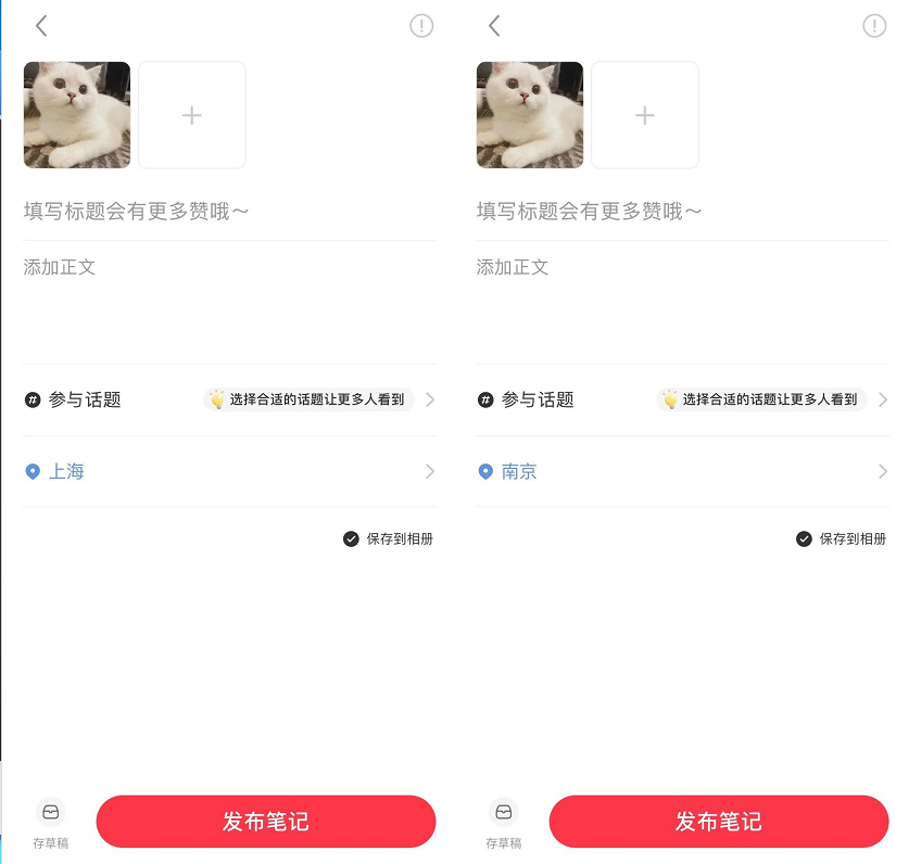 小红书发布笔记,是能自定义选择地理位置的,这为账号运营提供了便利。