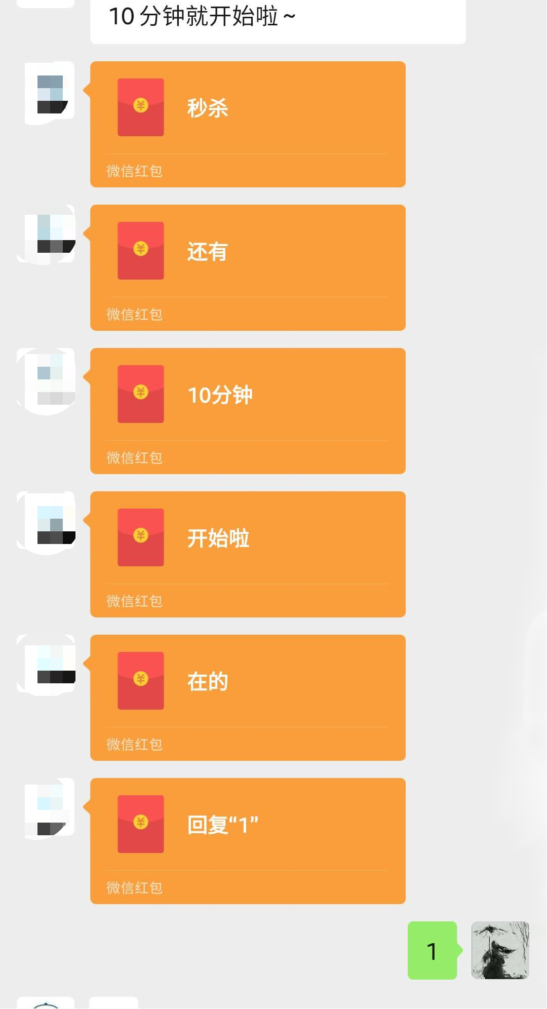 有些运营,为了让群内的人看起来尽可能多,会在快闪群建立后,秒杀正式开始前,做裂变,让用户拉人进来给红包。