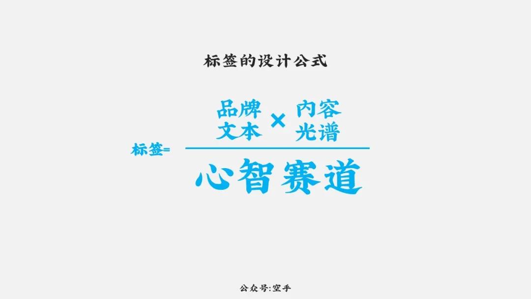 然后,品牌要基于这个核心标签来设定品牌文本(用于广告投放和营销推广),确定内容光谱(用于自媒体和内容创作)。标签品牌,这是品牌思维的第二层。