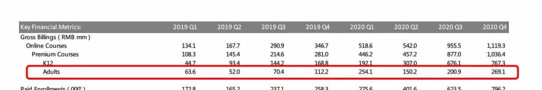 据2020财年有道财报,K12全年营收为243.4亿元,成人教育全年营收87.5亿元。目前K12仍占总营收大头,但成人业务的营收潜力不可小觑。