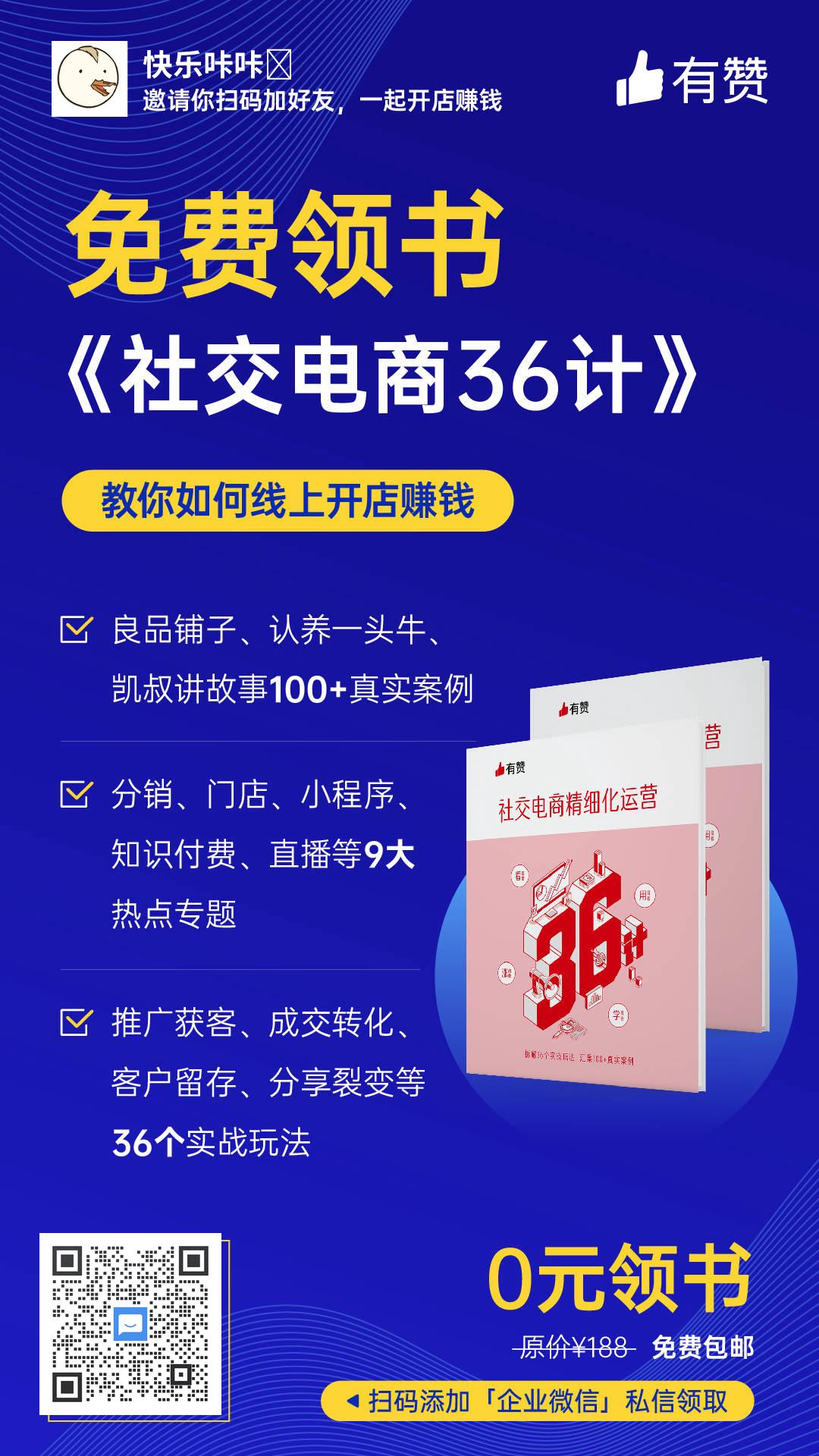今天分享的案例来自卡卡童鞋,所拆解的【有赞】《社交电商36计》免费领书活动~