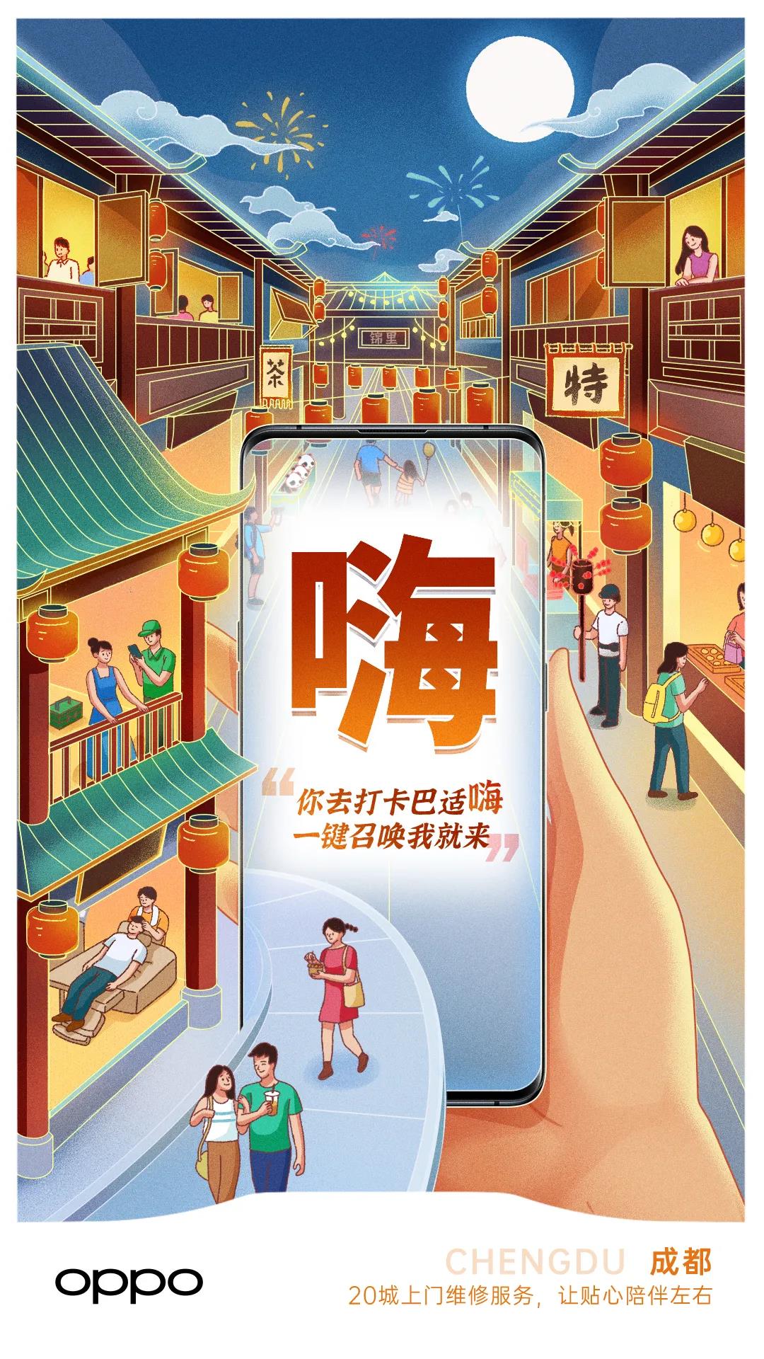 同时,还针对不同城市上门维修服务,以方言特色文案,推出一组既接地气又能体现在地服务优势的海报。