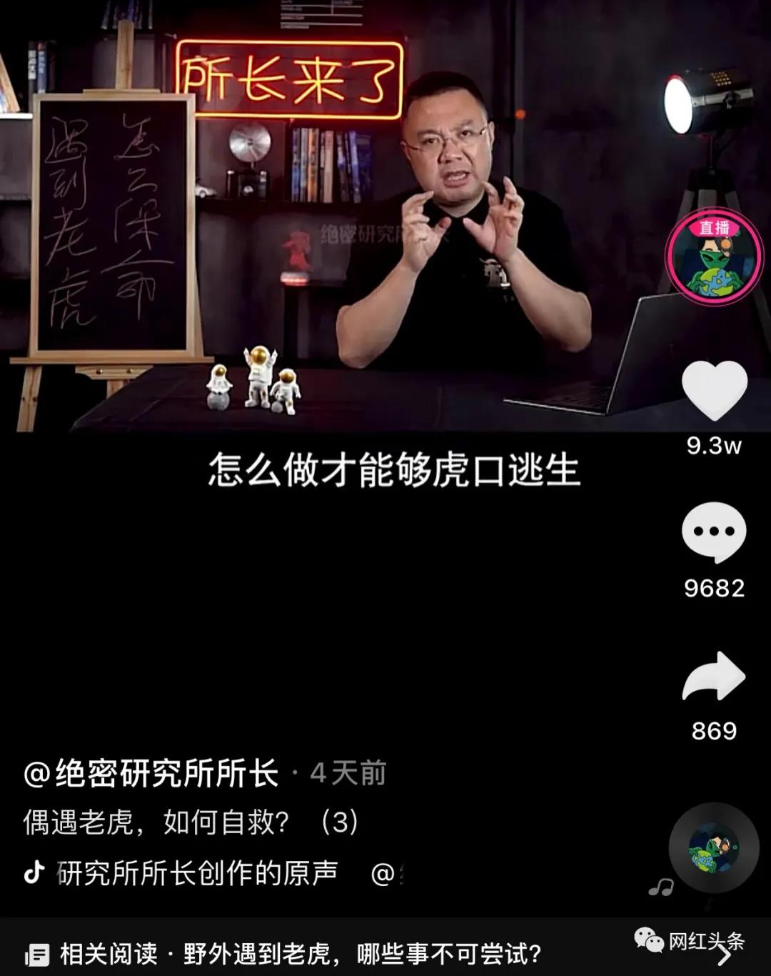 例如2021年6月6日的视频中,主要讲解了"偶遇老虎如何自救"。