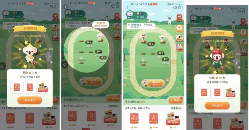②活动独特性,考拉形象的使用,用户立马就能识别这是考拉海购的活动,从视觉上区别其他电商养成游戏