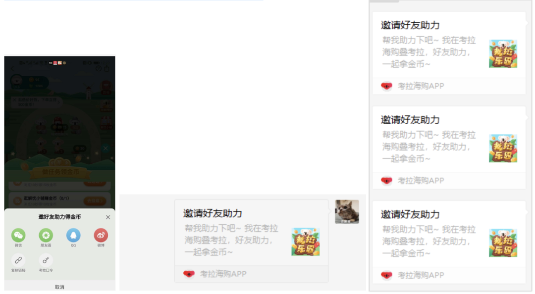 ①互动游戏中应该增加风控机制,比如:分享助力限制每人次数,货币消耗体系,降低整体虚拟货币发放成本。考拉在游戏互动设置的时候考虑整体风控,增加人物参与限制环节