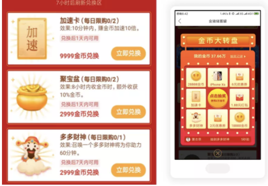 金币商城:每天0点限时限量兑换,定时兑换增加用户粘性