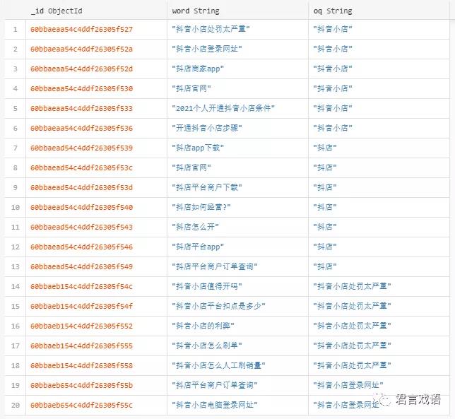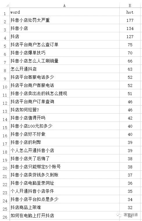 首先选择一个行业主词,比如我前面提到的"抖店",当然抖店是个简称,它的完整名称叫"抖音小店",所以主词有两个。