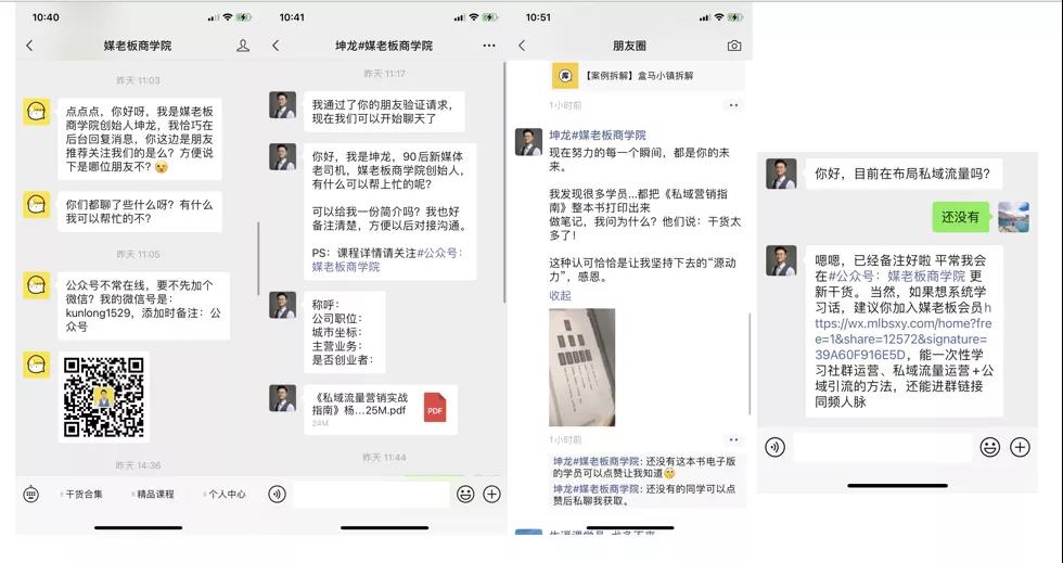 3.创始人IP问候和添加好友,提升整个体验和品牌效果,通过朋友圈的长期触达,建立的信任,后期再通过活动进行成交转化