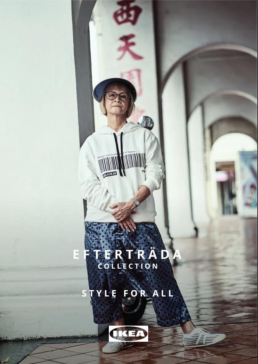 此次的新品系列名为「Efterträda」,在瑞典语里的意思是「成功」,该系列中包括各类的服装和家居用品。为了推广这次的新品,匹配的宣传海报以「所有人都能驾驭的风格 Style for all」为主题,邀请了一组 70 岁以上的市民出境。