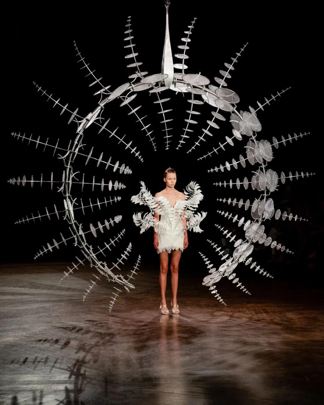 时装设计师Iris Van Herpen与美国动态雕塑艺术家Anthony Howe合作的装置时装,展现了科技与艺术及流行文化深度融合之美