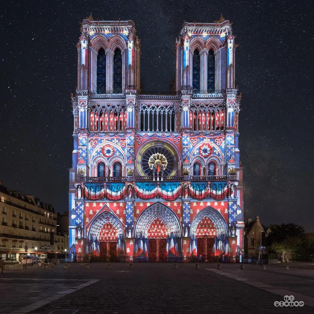 2017年11月8日~ 11日,那时候还未起火的巴黎圣母院为纪念"一战"胜利一百周年,邀请法国灯光大师 Bruno Seillier导演策划了一场Dame de Cœur 3D 灯光秀,整场演出贯穿了战争与和平这一主题。