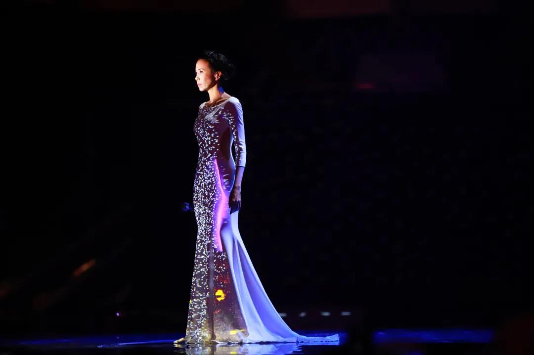 "烎·2018潮音"发布夜,艺术家Oskar & Gaspar以投影的方式为歌手莫文蔚披上了一件可变幻的礼服