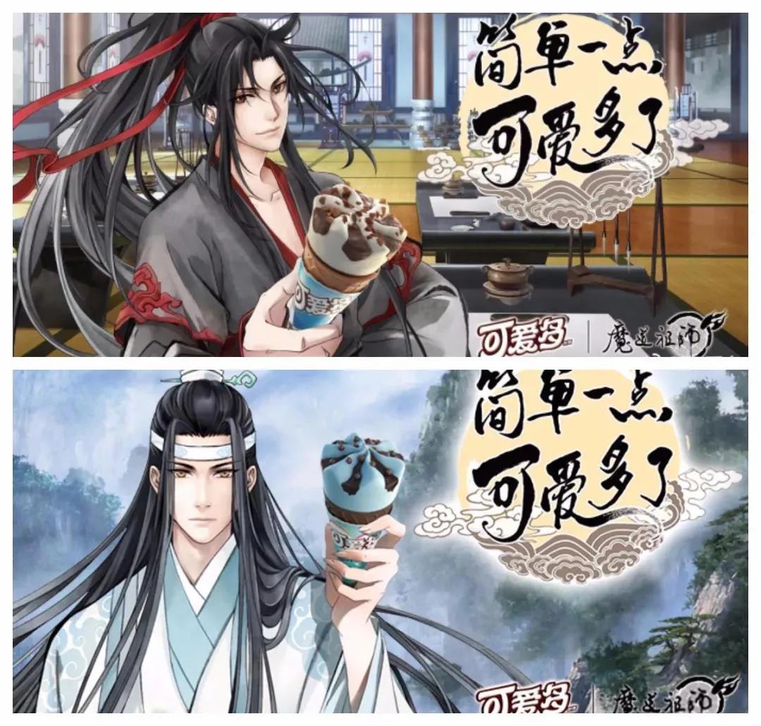 不仅如此,动漫人物代言也成了潮流趋势,品牌不仅邀请知名二次元人物代言,如可爱多与动漫IP《魔道祖师》合作,动漫中的两大男主魏无羡和蓝忘机成为可爱多的代言人;还打造了品牌专属虚拟代言人,比如欧莱雅——欧爷、肯德基——开心姐姐、屈臣氏——屈晨曦…