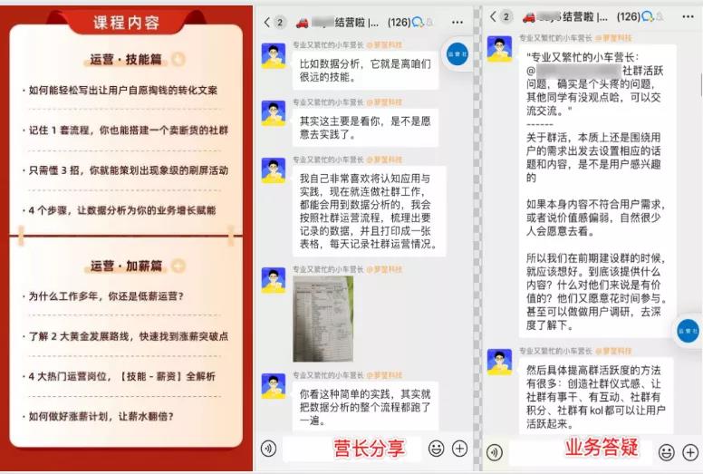 ③班主任分享的个人经历部分内容在落地页其实有展示,让细心的用户发现后会感觉一眼假。同时,也有用户反映内容过于小白,但官方基本选择了忽略完事。