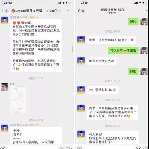 ②期间抛出1V1咨询名额,对于新人来说,可能会进行询问,1V1沟通班主任能够获得更精准的用户信息,有利于后期转化。