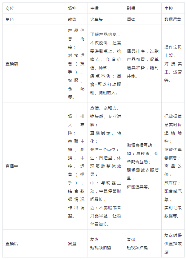 主播、副播、中控、场控需要在直播前、中、后紧密协作,才能形成一支高效的直播运营团队。