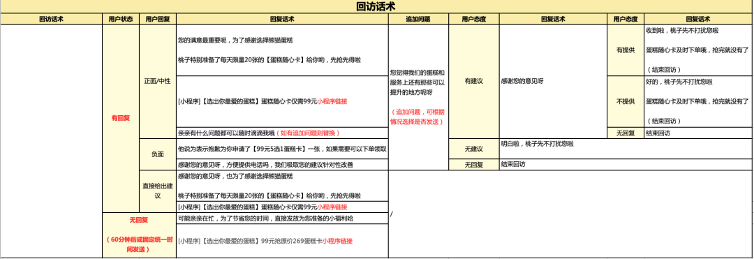 此外,沟通过程中会给用户打非常多的标签,比如用户买蛋糕的目的、家里是否有孩子、购买时间、客单价、复购频次,这些都可以帮助我们在适当的时间节点做用户唤醒。比如,用户去年某个时间买过蛋糕,今年可以提前通过短信、企业微信等提醒用户。