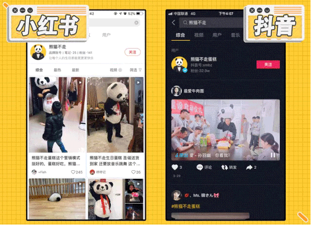目前公众号总粉丝数超2000万,复购用户占比70%,年平均复购3.7次;私域用户近300万(企微用户+个微用户,与公众号粉丝不重叠),私域营收占整体营收的60%-70%;生日聚会现场拍照分享率超100%。小红书用户自发关于"熊猫不走"的笔记发布数量累计13万+。