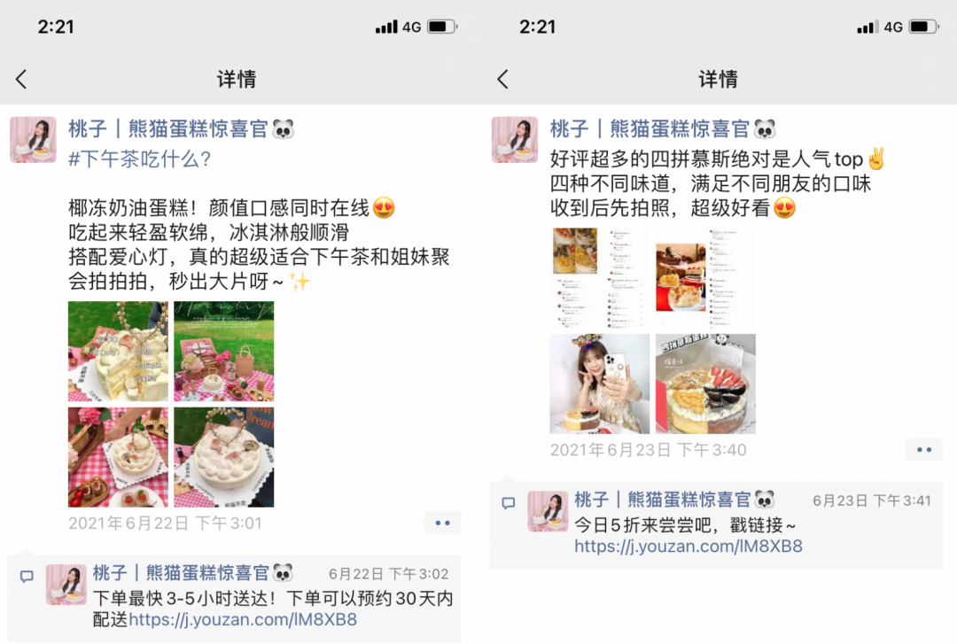 用户在美团消费体验后,可通过产品物料上的公众号二维码进入私域流量池。将用户转化为私域用户后,我们还会时常给用户推送买家秀蛋糕图片占领用户认知,让他们想到生日或聚会时,第一时间能联想到我们。