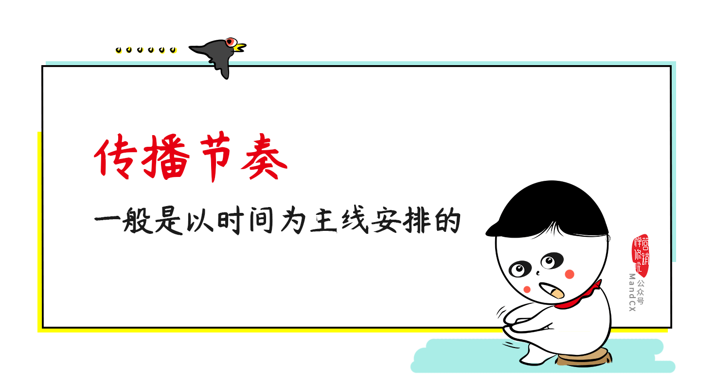 具体到实际呈现来说,传播节奏一般是以时间为主线来安排的。