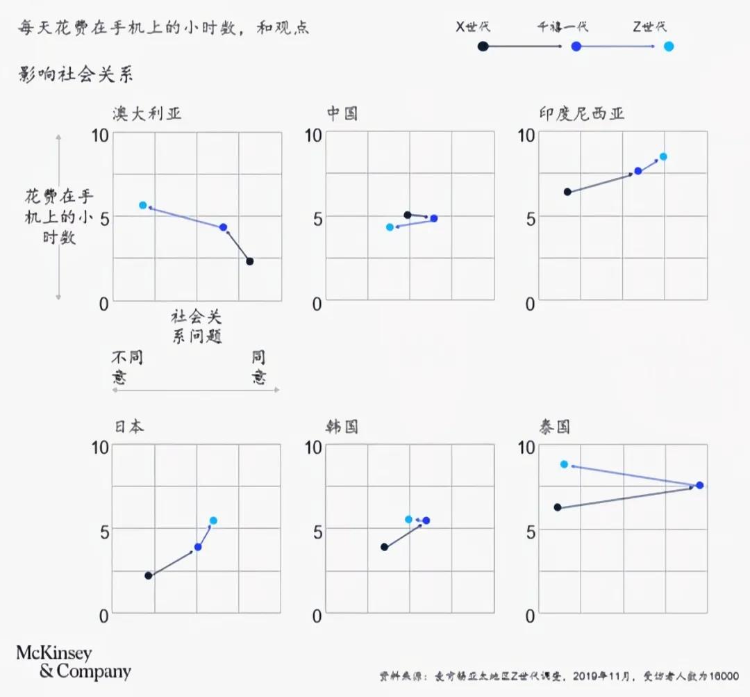 目前,Z 世代正处于十几岁到二十多岁的年龄段,他们被称为数字原住民,与千禧一代(生于1980到 21世纪初)生长在模拟和数字文化的混合环境中不同,Z世代从小就接触到数字环境,他们没有见过互联网出现之前的世界,是真正的"网生一代",仅在亚太地区,就有近1/3的z世代每天花费在手机上的时间为六小时或更长。