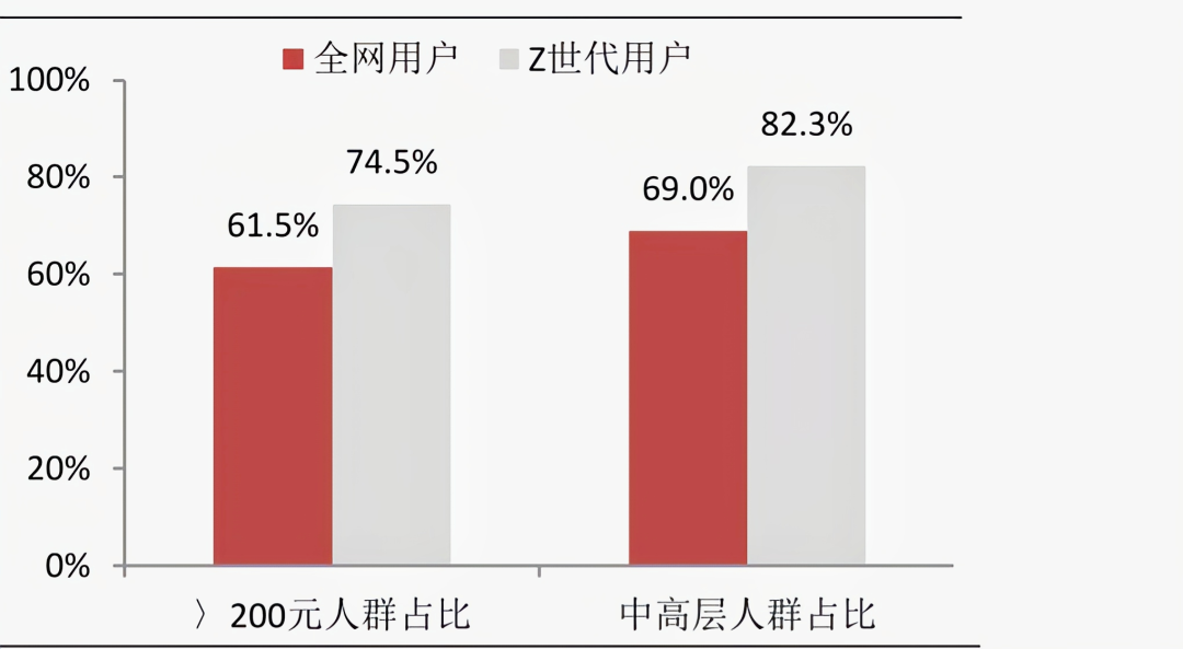 据山西证券研究所数据分析,目前我国线上消费实力下,两百元以内消费中全网用户占61.5%,Z世代用户占74.5%,中高层人群消费中全网用户占69%,Z世代占82.3%。数据说明一切,Z世代正在一步步成为国民消费主力,而他们的消费行为也逐渐形成了一定的特征。