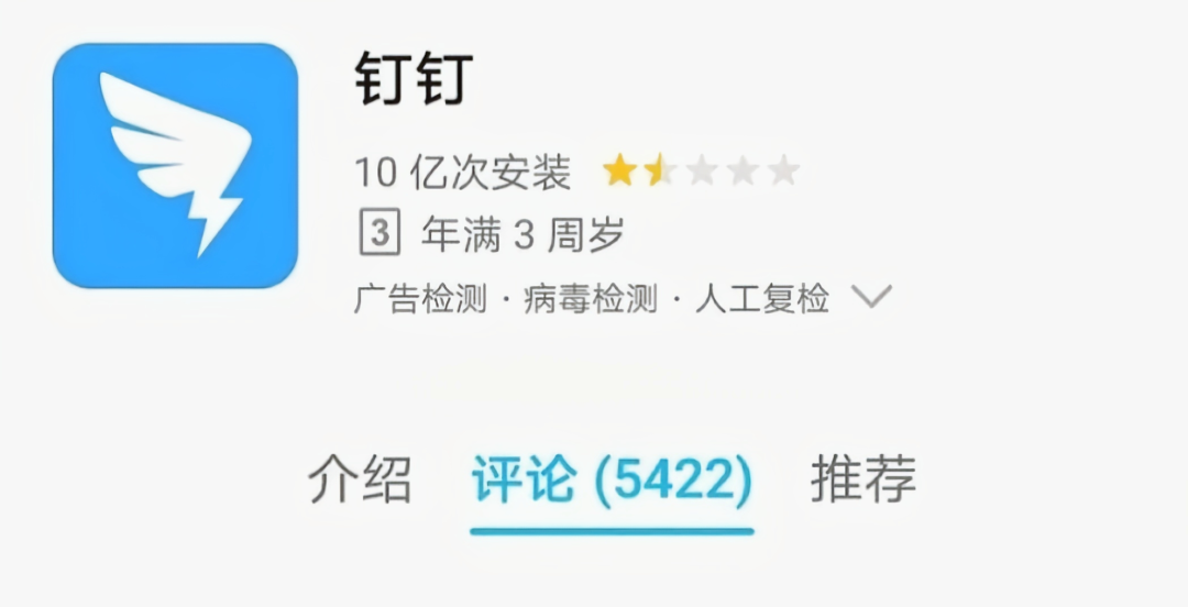 2020年,钉钉作为绝大多数国民学生线上课程工具,却因连续被用户一星差评,从而成功出圈。