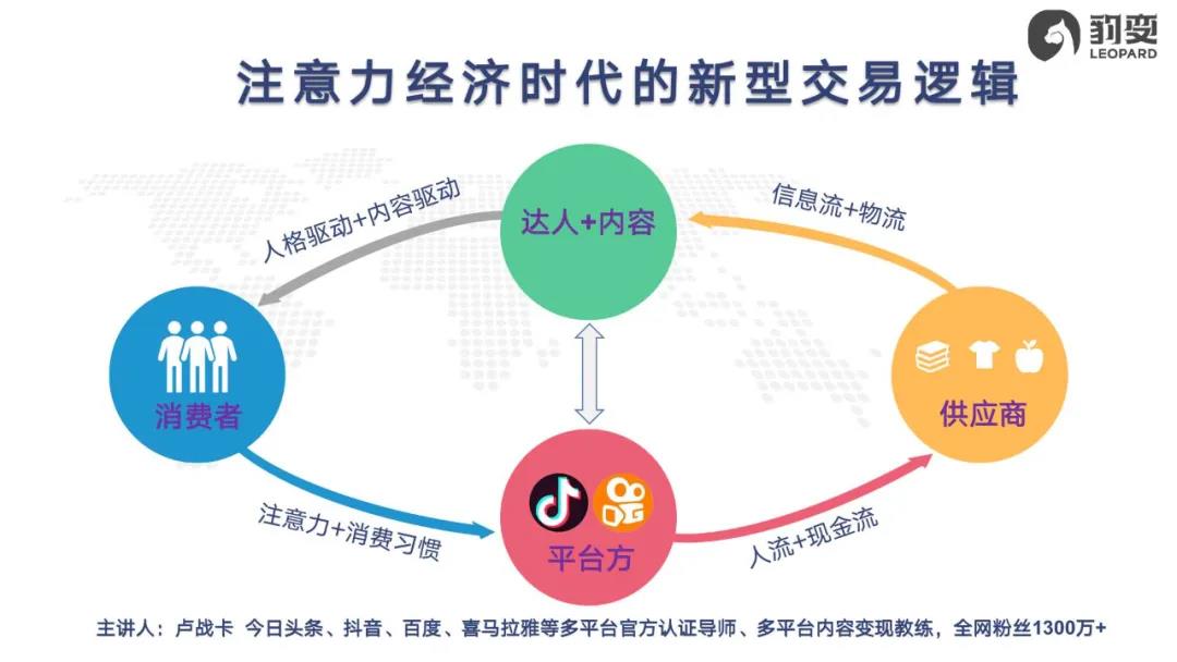 任何生意,都无非是人、货、场这三件事,注意力经济时代的新型交易逻辑,就是让每一个短视频生态的参与者,都有平等的机会触达到更多的人。我们只需要能打通"人"这一环,就可以一通百通。而打通人,核心靠的是内容驱动和人格驱动。