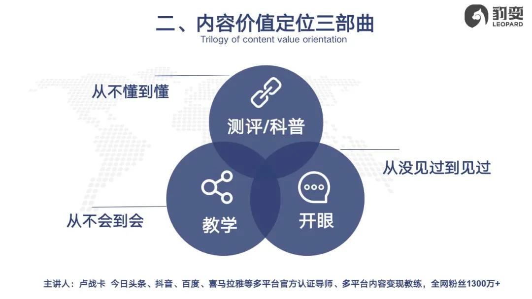可是,很多人都未想清楚自己在提供什么价值。其实,注意力经济形态下的内容价值定位无非就是三个:从不懂到懂,从没见过到见过,从不会到会。