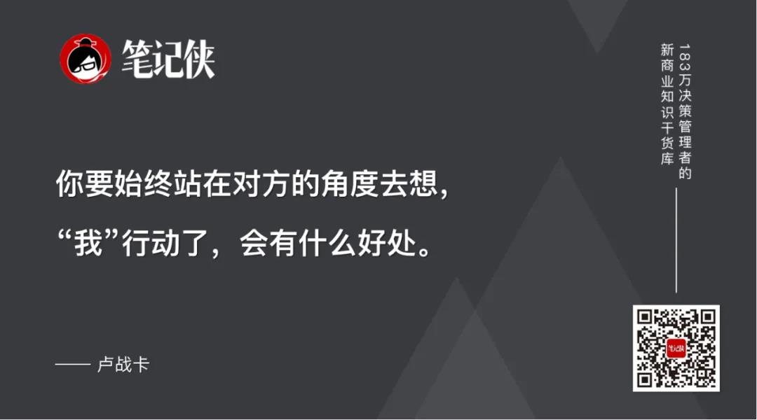 你要始终站在对方的角度去想,"我"行动了,会有什么好处。