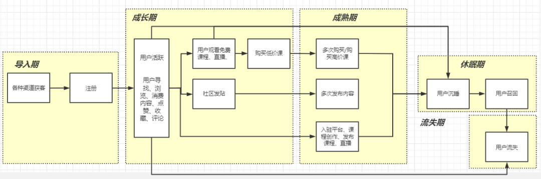 在产品中分别对应社区模块用户、课程消费模块用户、课程创造模块用户,对这三类用户也可以再做细分。