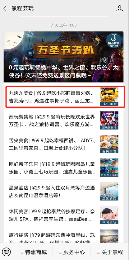 案例名称:【景程旅游】"九块九美食"拉新引流活动