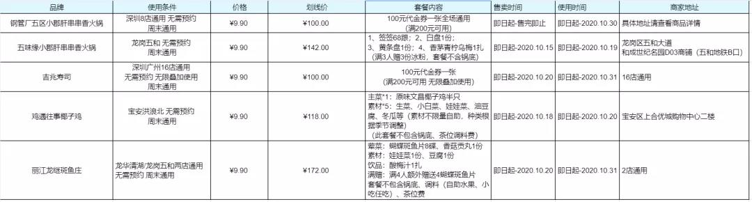 对该活动下各个餐饮品牌及活动套餐做了如下整理: