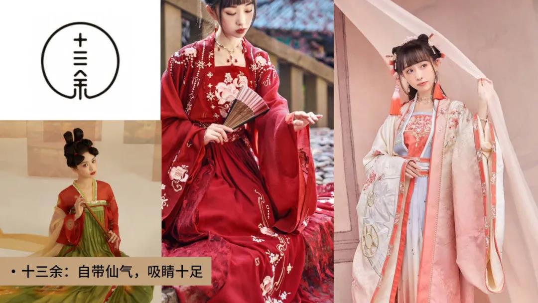 十三余,创造视觉感受,自带仙气,吸睛十足。他们真正的爆发是在2019年,爆发的关键点是小豆蔻去海外十国拍摄,当汉服和海外场景结合的时候,会极大的激发消费者的民族自豪感,让这个产品走出传统的商品购物形态,变成民族自觉的自我装备。