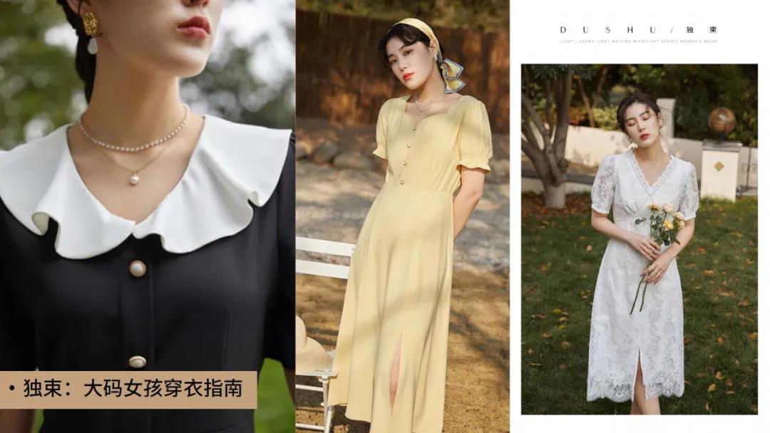 独束,标榜自己是大码女孩的穿衣指南,这是今年618大码女装首位的品牌,它在指导消费者进行商品的选择。