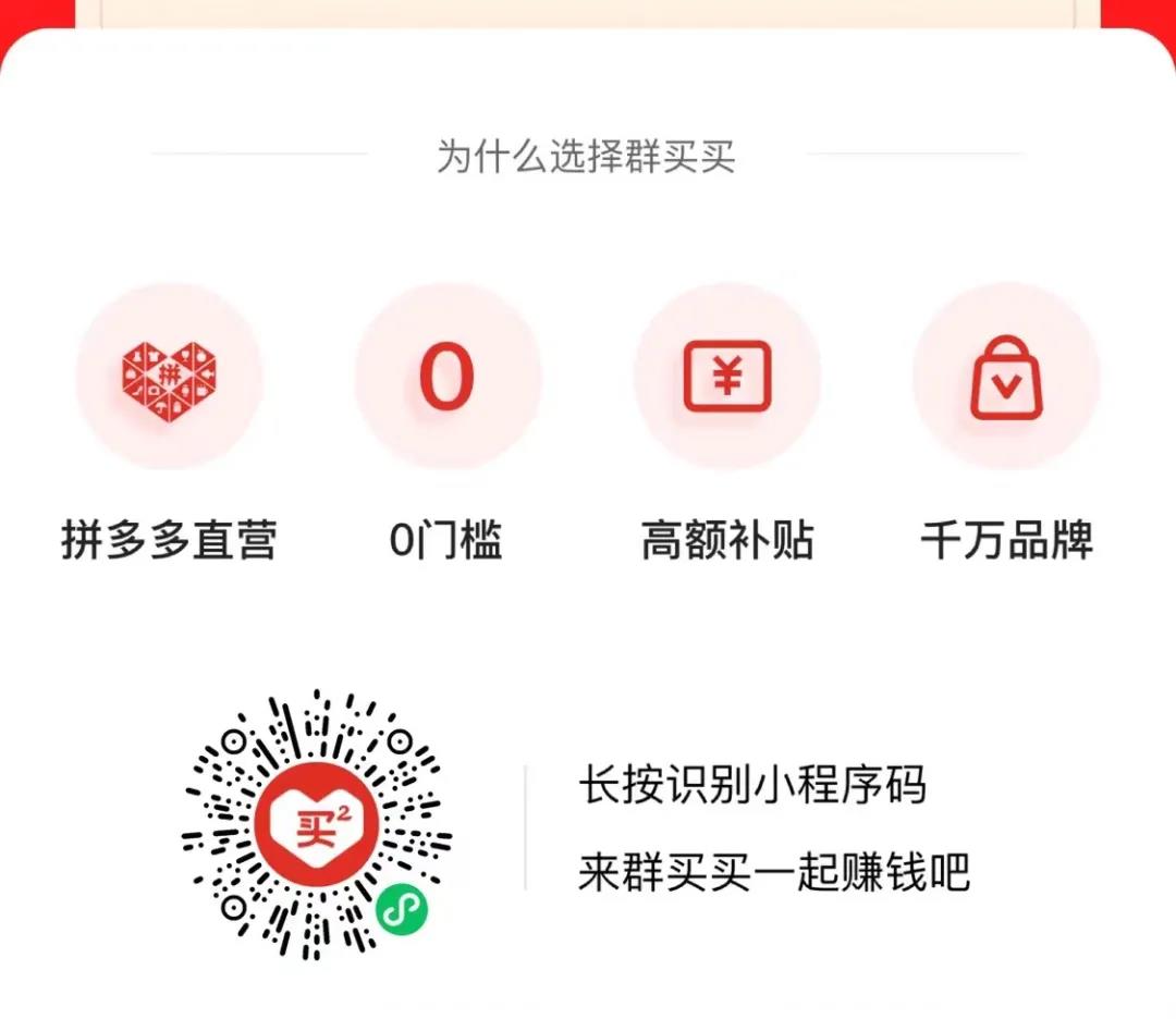 一方面群买买的商品以品牌货为主,没有拼多多平台上卖几块钱的产品。另一方面拼多多之前的推广靠自己打广告,而群买买靠招募代理做分销裂变。