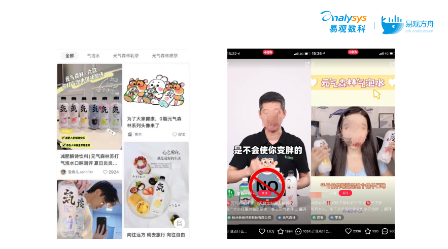 在小红书上,有关元气森林种草、测试、分享交流的笔记达5万+篇;人气博主、明星等头部KOL推荐也扩大了元气森林的影响力。