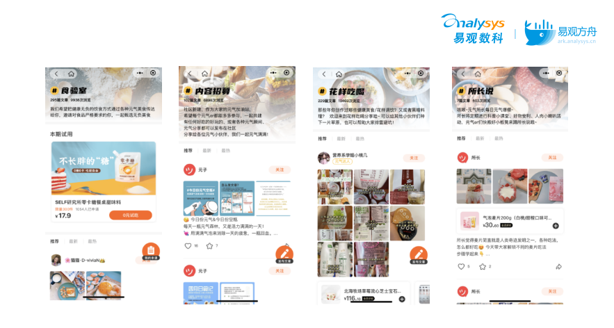 - 食验室:招募用户试吃的平台,不定期会推出新品,用户只需支付邮费就可以免费试吃,然后再按照要求上传试吃体验和建议,从而为产品的优化迭代提供依据。此外,在发布试吃时,元气森林也会在社群里做相应推广和宣传。