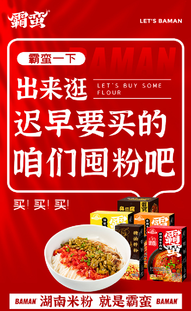 除了营销上满足用户生活需求与视觉体验,赋予品牌文化属性,是品牌打动用户的重要条件。无论是柳州螺蛳粉申遗的成功,还是具有浓厚的湖南文化基因的霸蛮米粉,都被赋予了文化属性,在满足用户精神需求的基础上,助力品牌强势出圈。
