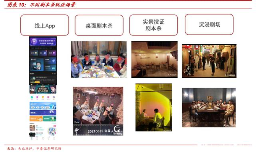 如今的剧本杀已经延展出各种不同的模式,面向不同的玩家。例如有些浅度的剧本杀情节相对简单,上手容易,3-5小时就能体验一把,适合新手玩家和社交人群;有些重度的剧本杀情节复杂,整体体验下来可能需要10个小时以上,甚至会为玩家安排食宿;而线上有些剧本杀已经直接转化为手游形态。