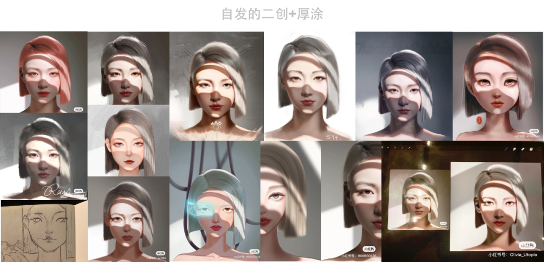 下图是主要出现在小红书上的大量用户的二创+厚涂,这样既引来了自发的多重传播,形成社交货币效应,又引来了更多媒体的关注,产生放大。
