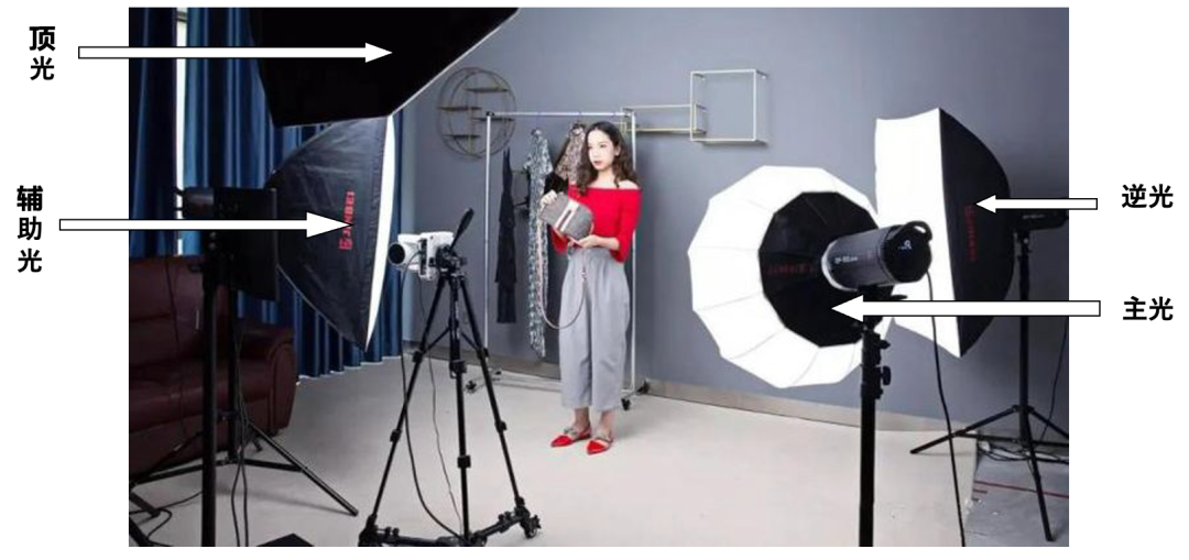不同标准的拍摄,对应着不同成本的灯光搭建。所以顶光灯、补光灯、轮廓光灯等,大家可以按需配置。