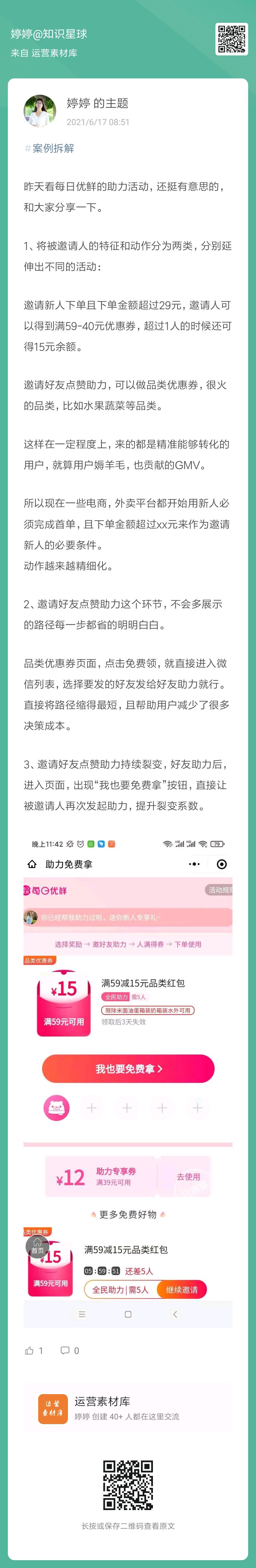 这一点,我很喜欢每日优鲜的邀请助力活动,按照不同的结果区分出来不同的奖励,从而更好地带来精准用户。