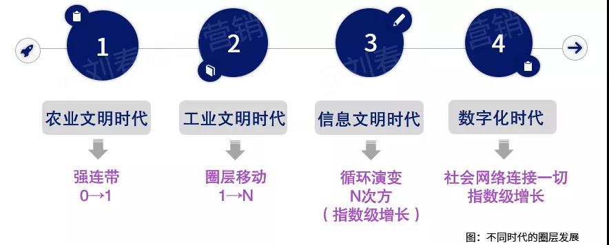 工业文明时代的圈子变化是乘法,圈层移动,是1到N。